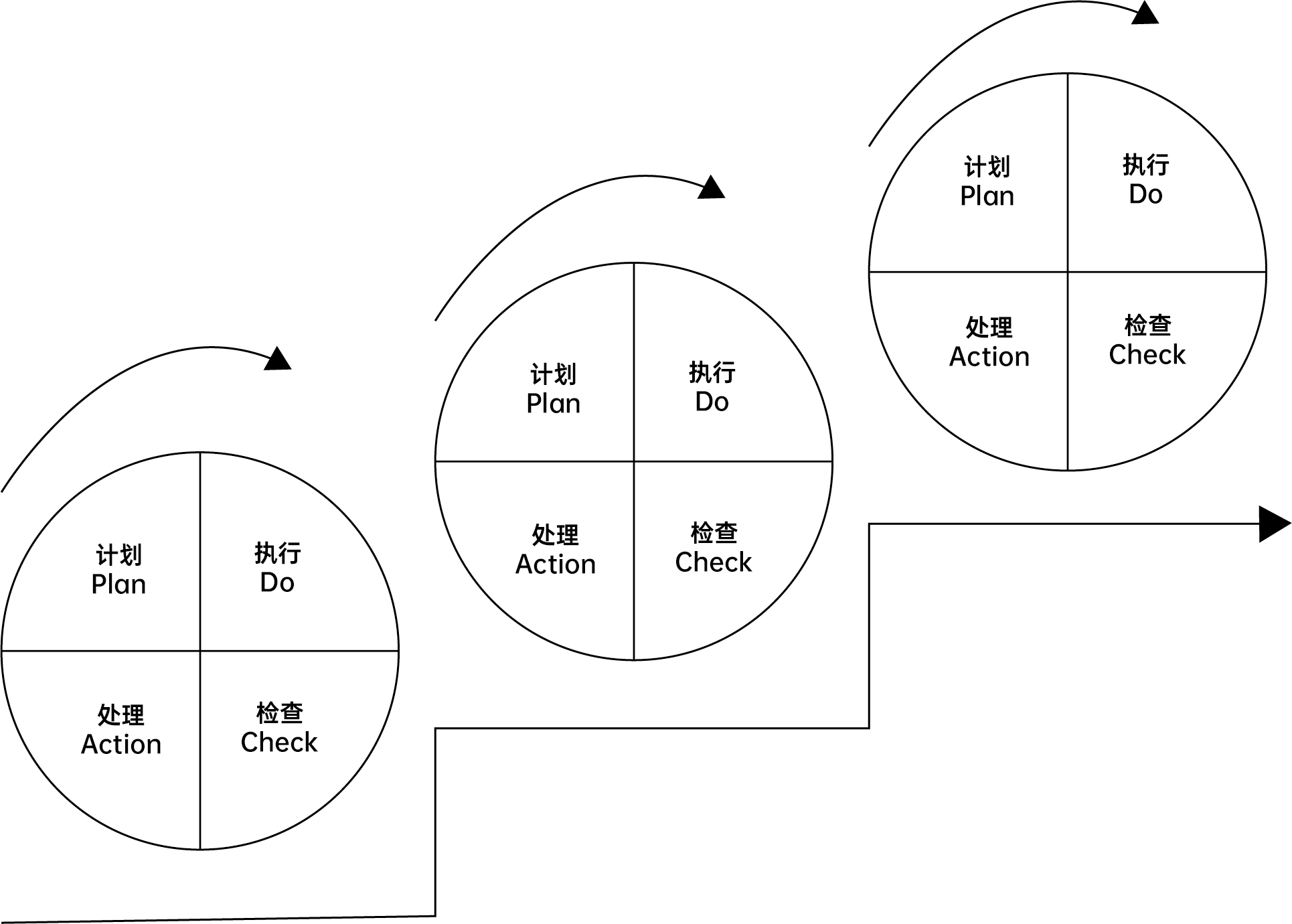 - PDCA 循环是阶梯式上升的过程,每个循环是一个管理周期。