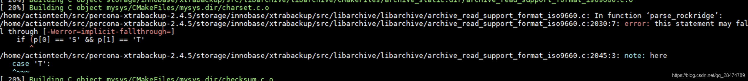 原因:当时使用了gcc7.3.1编译触发了xtrabackup的bug: https://jira.percona.com/browse/PXB-502axs