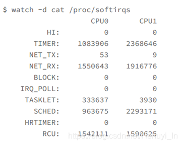- cat /proc/softirqs
