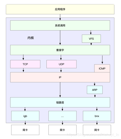 - 最底层,则是网卡驱动程序以及物理网卡设备。