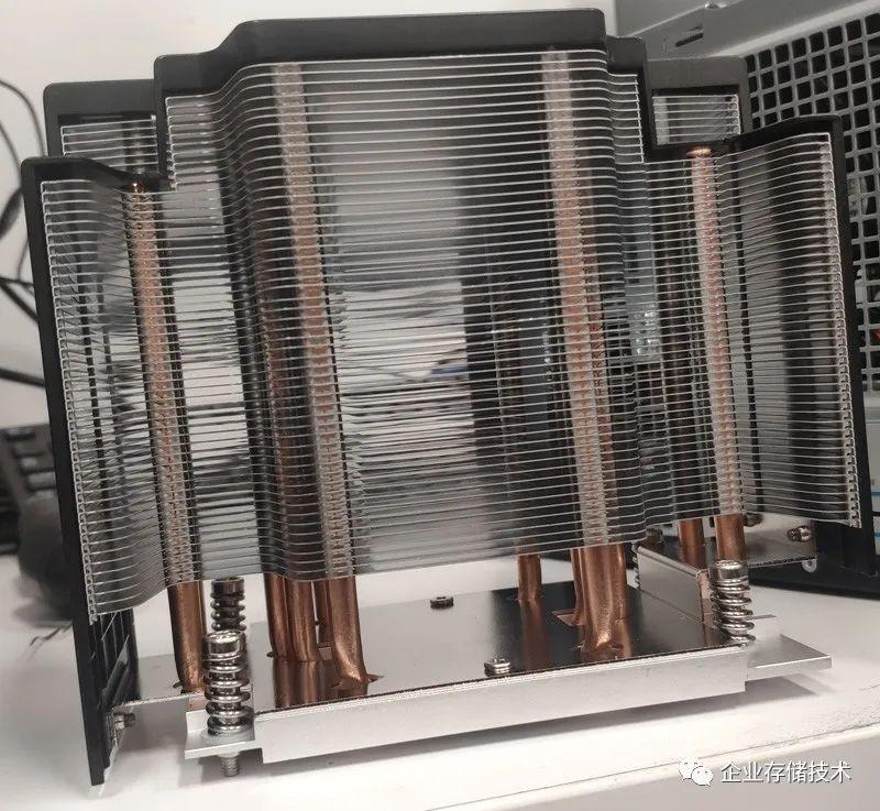 一共6根热导管,并且是贯穿散热器底部直接贴合到Ryzen Threadripper PRO CPU表面。这应该是为了尽量降低280W风冷散热的噪音,工作站用户普遍在乎这个。