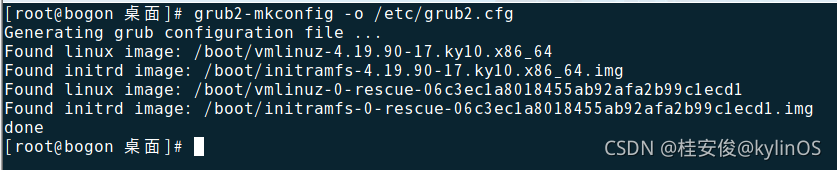 # grub2-mkconfig -o /etc/grub2.cfg //重新生成 /etc/grub2.cfg 配置文件