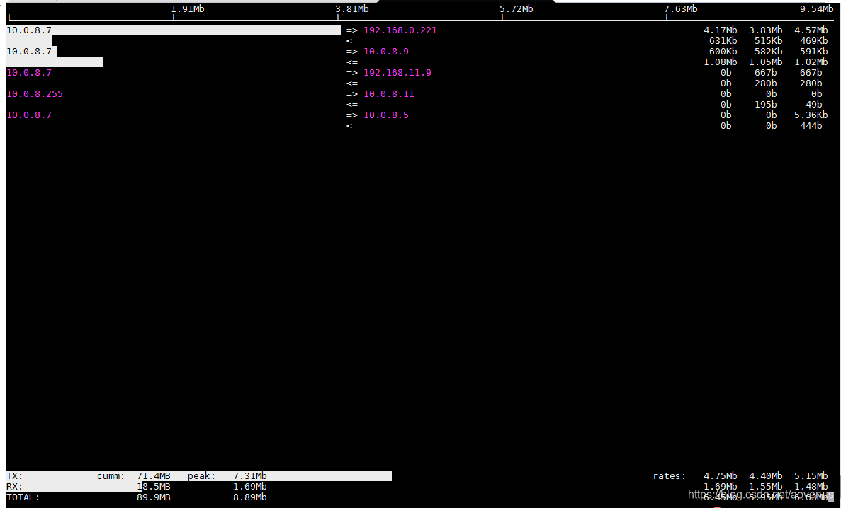 方法2:./iftop -i eth1 ##查看多网卡的系统时,可以指点网卡名