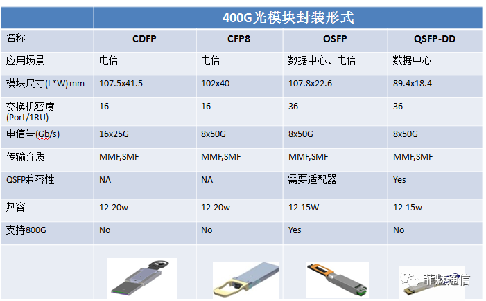 400G光模块按照封装方式主要分为CDFP、CFP8、QSFP-DD、OSFP。