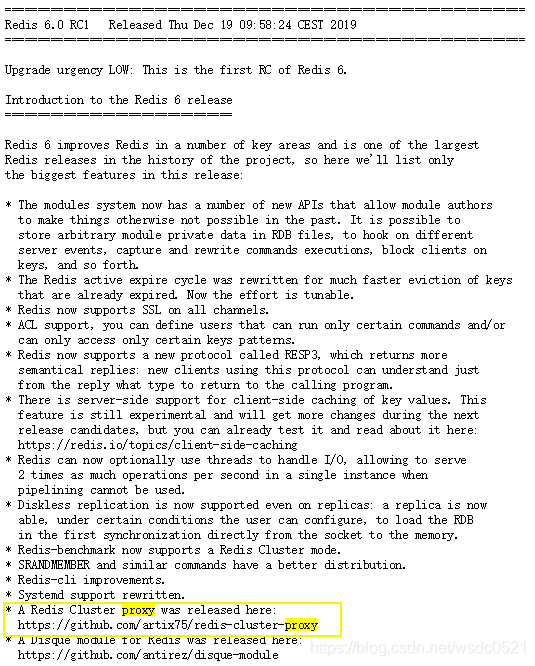 在Redis6的release note中可以看到新功能中的ACL,RESP3,客户端缓存我们在前面的文章中已经介绍过,本篇就看一下集群代理。集群代理与Redis在Github上是不同的项目,地址如下: