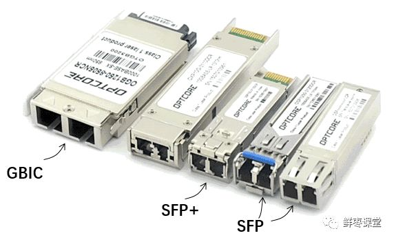 进行远距离数据传输一般都是通过光纤线缆来进行数据传输,接口模块一般为SFP(传输率2Gb/s)和GBIC(1Gb/s),对应的接口为SC和LC。
