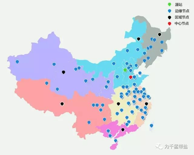 (3)缓存源站内容,出于对源站的保护以及边缘节点回源性能的考虑,区域节点同时还充当着"中间源"的角色。