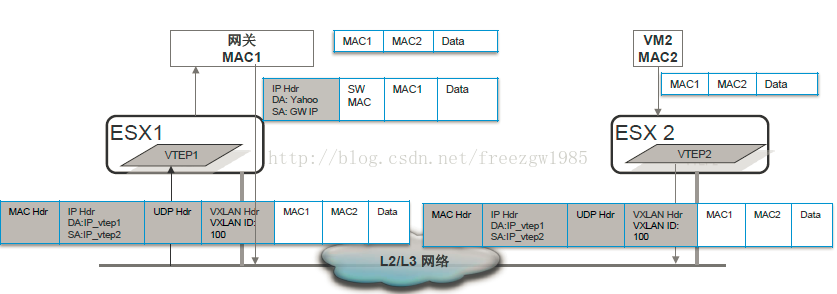 已经知道,VTEP为虚拟机的数据包加上了层包头,这些新的报头之有在数据到达目的VTEP后才会被去掉。