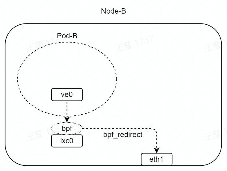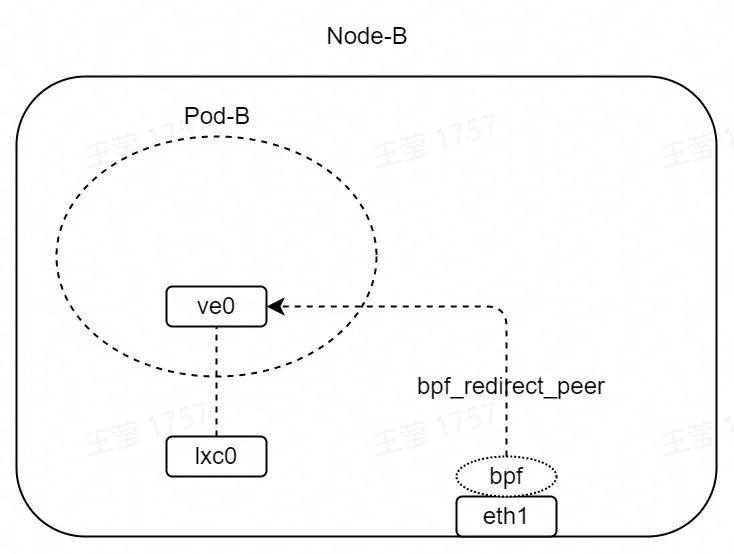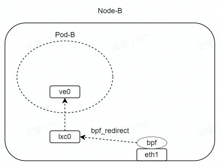 lxc0 口是 veth 口,内核的实现是 veth 口发包,对端(peer)的 veth 口就会收包。在本例中,Pod-A/B 中的 ve0 口会收到报文。